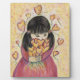 Gathering Love Hearts Artwork features a girl holding a bouquet of hearts. Golden hearts swirl around her. Art is a reminder to receive love and how it can sustain us.