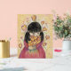 Gathering Love Hearts Artwork features a girl holding a bouquet of hearts. Golden hearts swirl around her. Art is a reminder to receive love and how it can sustain us.