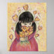 Gathering Love Hearts Artwork features a girl holding a bouquet of hearts. Golden hearts swirl around her. Art is a reminder to receive love and how it can sustain us. Inspirational artwork by Laurel Latto for DonnaBellas Angels.