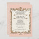 COLOR PALETTE: blush shell pink, cream and faux gold metal look. DESIGN COLLECTION: This is a matching Bridal Shower Party Announcement Invite. This is a Wedding Invitation Set which includes most any item you might need to coordinate your weddings decor. Using original vintage antique Art Deco and Art Nouveau stylised floral line art, Audrey Jeanne Roberts has graphically designed this glamourous gold leaf look, dimensional appearing lavish golden "carved" border with curling leaves, swirling around the border with great flourish. The scroll work is elegant and sleek. There are also printer's ornament typography dividers. Underneath the frame is a soft, lace background design pattern in cream. This look is perfect for an Old Hollywood, elegant, sophisticate glam event. Easy to customise your text using the template fields provided.