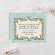 COLOR PALETTE: azure aqua blue, cream and faux gold metal look. DESIGN COLLECTION: This is a matching Formal Dinner Reception Invite to match the wedding invitation set of the same name. This is a Wedding Invitation Set which includes most any item you might need to coordinate your weddings decor. Using original vintage antique Art Deco and Art Nouveau stylised floral line art, Audrey Jeanne Roberts has graphically designed this glamourous gold leaf look, dimensional appearing lavish golden "carved" border with curling leaves, swirling around the border with great flourish. The scroll work is elegant and sleek. There are also printer's ornament typography dividers. Underneath the frame is a soft, lace background design pattern in cream. This look is perfect for an Old Hollywood, elegant, sophisticate glam event. Easy to customise your text using the template fields provided.
