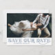 Announce your wedding date with this classic photo save the date flat card. It features blue art deco typography with matching pattern. Personalise by adding your photo and details. This elegant vintage theme save the date announcement is perfect for Gatsby theme weddings.