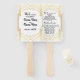 The fans are very pretty and easy to assemble. We utilized the original template and just inserted the names of our wedding party. After the product arrived we noted they read,”Made of Honor” rather than “Maid of Honor”. Upon re-checking the website we noticed the typo is in the original template and was not a mistake on our end. It is too late to return because our wedding is in just a few days but if we had time we would certainly request an exchange. See review above regarding typo.