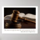 A wooden judge's gavel with a reference book (bible) in the unfocused background. The following quote by the Roman Tacitus "The more corrupt the state, the more numerous the laws."