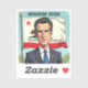 Gavin Newsom for President in 2028. Red, white and blue patriotic political sticker with caricature of Gavin.