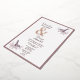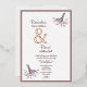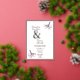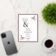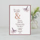 A beautiful wedding invitation with a burgundy coloured theme of birds on a branch