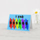 Gay Lesbian Kayaking Greeting card, rainbow kayaks in a row, "i yak".