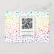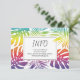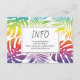 Gay and lesbian wedding rainbow tropical leaves and confetti INFO enclosure card card. It features a pattern of monstera and palm leaves in rainbow colours and your text in a frame. The back covers a pattern made of colourful confetti and a QR code for more wedding details.