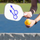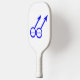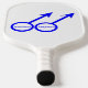 This awesome Pickleball Paddle is designed for gay men. It features two blue male symbols standing side by side. The background is white and there is customisable blue text inside each of the symbols to put names. There is also custom text on the back to put names.