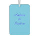 This awesome air freshener is designed for gay men. It features two blue male symbols standing side by side. There is customisable blue text inside each of the symbols to put names. There is also customisable text on the back.
