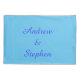 This awesome pillowcase is designed for gay men. It features two blue male symbols standing side by side. There is customisable blue text inside each of the symbols to put names.
