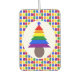 This awesome air freshener features a rainbow Christmas Tree with 2 small blue male symbols sitting on top of the tree. Each layer of the tree is a different colour of the rainbow. The tree sits in a brown pot and is surrounded by presents. Each present is also a colour of the rainbow, with a different rainbow coloured ribbon and bow. A lovely design for gay couples this Christmas.