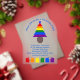 This awesome acrylic Christmas Party invitation features a rainbow Christmas Tree with 2 small blue male symbols sitting on top of the tree. Each layer of the tree is a different colour of the rainbow. The tree sits in a brown pot and on the bottom there are presents. Each present is also a colour of the rainbow, with a different rainbow coloured ribbon and bow. There is custom text so you can personalise this design with all the party details.