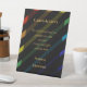 This gay wedding display sign is perfect for guiding your guests to your cards and gifts table. Bold diagonal rainbow stripes on black with elegant gold typography frame your personal tribute message beautifully. Fully customizable with the grooms' names and your heartfelt message remembering cherished family and friends. The dignified design displays prominently on a memorial table or at your ceremony entrance. Coordinates respectfully with our complete Gay Men Wedding Collection. Ideal for contemporary LGBTQ celebrations seeking meaningful, personalized wedding signage that celebrates those dearly missed.
