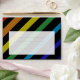 Send your wedding invitations in style with these elegant gay wedding envelopes featuring the grooms' return address. Bold diagonal rainbow stripes on black with gold typography create a modern, masculine design that makes a stunning first impression before guests even open your invitation. Fully customizable with your names and address printed directly on the envelope. Coordinates perfectly with our complete Gay Men Wedding Collection for a cohesive look. Ideal for contemporary LGBTQ celebrations seeking polished, personalized wedding stationery that reflects your unique style.