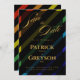 Announce your wedding date with this elegant gay wedding save the date card. Bold diagonal rainbow stripes on sophisticated black create a modern, masculine design with luxurious gold script typography. Perfect for couples seeking unique, personalized wedding stationery that makes a memorable first impression. Customize with your names, wedding date, and venue details. Features premium design elements ideal for contemporary same-sex weddings and LGBTQ celebrations. Part of our complete Gay Men Wedding Collection including invitations, RSVP cards, and thank you notes.