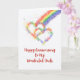 Touch the hearts of your two wonderful gay dads with this colourful, heartfelt anniversary greeting card showing a beautiful "paint splatter" rainbow of the six lgbt pride flag colours ending in two interlocking hearts.