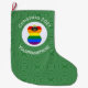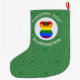 An African angel wears the Gay Pride Rainbow Flag on this large Christmas stocking for Christmas decor. The Christmas Gay Pride Flag African angel is inside a circle of white squiggly squares. The background is green squiggly squares. To personalise, add a name. To customise, add the year. Or, create your own text.