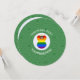 For your Christmas party, this round invitation features an angel with brown skin and black hair and flowers for eyes, wearing the Gay Pride Rainbow flag. She flies inside a white, fractal circle of squiggly squares, surrounded by a background fractal of green squiggly squares. Add a name and year to the front to personalise. Or, change the text to whatever you like. Party information is on the back for the details of your event.
