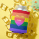 Gay pride rainbow can cooler, with a colourful flag design and white customisable text. A fun entertaining item to show your support to the LGBTQ Community.