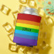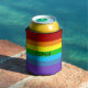 This customisable beer or soft drink can holder has a colourful rainbow background.