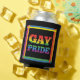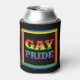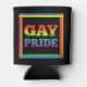 The colours of the rainbow are featured in this "GAY PRIDE" design. Shown here over a black background, you can customise your can cooler by choosing your favourite colour. GAY PRIDE design appears on the front and the back.