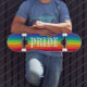 Show your true colours with our Rainbow Pride skateboard deck, featuring a vibrant rainbow background and the word Pride. Perfect for skaters of all ages, this unique and decorative skateboard celebrates diversity, love, and inclusivity. It makes a meaningful birthday gift, a standout present for Pride events, or a colourful addition to your wall decor. Make a statement at the skate park or enhance your space with this inspiring cool stripes colourful rainbow flag themed skateboard.