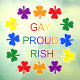 This awesome shaped window cling features a graphic image of a selection of rainbow coloured shamrocks encircling a rainbow coloured message that says "Gay Proud Irish". The design is for all LGBT Irish people who love their Irish roots and are proud to be Gay.
