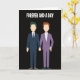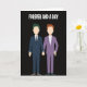 This greeting card shows two stylized men standing close together on a solid black background, holding hands in a quiet show of love. One has green hair and wears a navy suit with a white shirt and a dark tie. The other has reddish-brown hair and wears a light purple suit with a white shirt, which makes a nice contrast. Their faces are simple blank ovals with no features, so the focus stays on their connection rather than on specific details. Above them, the words “FOREVER AND A DAY” appear near the top in white, all-caps, simple sans-serif letters. The dark background makes the suits and hair colors stand out, keeping your eyes on the couple at the center. It feels like a calm, modern way to say “I’m with you,” perfect for a partner or a close friend 💘❤️.