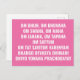 This postcard features the transliteration of the long form of Sanskrit Gayatri mantra - In white Bold text on a pink background.