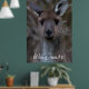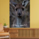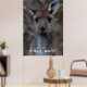 The western grey kangaroo (Macropus fuliginosus), is one of four large kangaroos and wallaroos that occur in Australia. The species is distributed across the southern part of the Australian mainland. Western grey kangaroos are large marsupials that are 97-223 centimetres from head to tail and three to 70 kilograms in weight (females weigh up to 34 kilograms). Although called grey kangaroos, they are light grey-brown to chocolate in colour with paler undersides. Western grey kangaroos sometimes have white marks on the forehead and, unlike other kangaroos, the muzzle is finely haired. Males have a strong, characteristic odour and well-muscled shoulders and forearms. This beautiful canvas depicts a close up portrait from a cute, young western grey kangaroo. Who wouldn't want this face on a poster in their home? You can customise the poster with or without the Aussie slang, or feel free to use your own name instead!