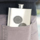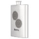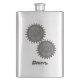 Decorative stainless steel flask, with graphics of two metal looking gears. Personalise the grey riveted looking text, at the bottom, to suit your needs. Great personalised gift idea.