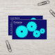 A business card template with an attractive motif made up of a series of cogged gear wheels creating a clean modern design suitable for many types of business. Company name and business on the front of the card. Name, address, telephony, email and web address on the reverse with a smaller version of the main motif.