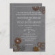 Industrial inspired steel grey wedding invitation with rustic tone gears.