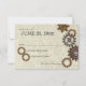 Industrial inspired gears rustic style design wedding response card in shades of bronze, copper and steel.