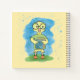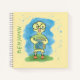 A cute yellow , blue and green spiral notebook for kids with a geeky duckling wearing big round eyeglasses and holding a book . Choose the type of paper you want inside ( ruled , handwriting practice , grid , or sketch ) . You can also choose between a soft or hardcover (for more durable life) . Personalise it with the name of the child .