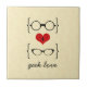 Cute and whimsical Geeky Glasses Tile featuring a red heart flanked by two pairs of geeky eyeglasses, a manly pair and a girly pair. This sweet tile will add nerdy flair to any decor! Easy to customise, simply add the personalised text of your choosing. Click "Customise It" to find more personalisation options.