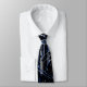 This tie is perfect for the geek or Sci-Fi lover we all know. Black background with blue and white lines in curves and circles giving an impression of a futuristic blueprint of scene.