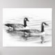 Black and white illustration of a pair of geese on the water by Yuichi Tanabe