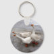 Foto by Zolotareva.Goose white on the white snow.Geese are funny.