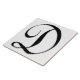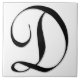 The letter D in Geessele style done in black with a white outline on a white background with a slight shadow to give it a three dimensional effect.