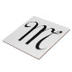 The letter M in Geessele style done in black with a white outline on a white background with a slight shadow to give it a three dimensional effect.