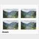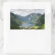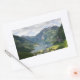 Rectangular sticker with the famous fjord Geirangerfjord, a cruise ship and the village of Geiranger between the mountains in Norway.