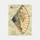 Geisha Fan with Leaves and Floral Print Fleece Blanket