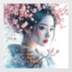 Geisha portrait, cherry blossoms, Japanese art, Window Cling