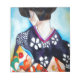 with original art design from watercolour painting of Japanese Geisha in dark blue intricate detailed orange kimono with sky blue background. Bright and colourful, inspired by oriental and Asian art, this beautiful lady comes from the Kyoto region of Japan.