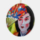 with original artwork design from watercolour painting by Sacha Grossel of Kyoto Japanese Geisha with colourful kimono and orange decorative fan. This beautiful design is inspired by Asian and oriental art and uses bright colour in the style.