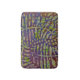 Gelli print stencilled abstract art in greens, purple and gold. This design was created using the gelli plate technique. Artwork and photography by Sandra Foster Designs ©.