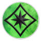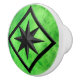 Knob in a gem stone slab pattern - rich lime green jade (jadeite), mottled with deeper emerald green, and a compass rose ornament with the look of black onyx