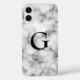 Phone case in a gem stone slab pattern, with a black onyx look monogram - classic grey / grey and white marble, with a delicate webbed pattern